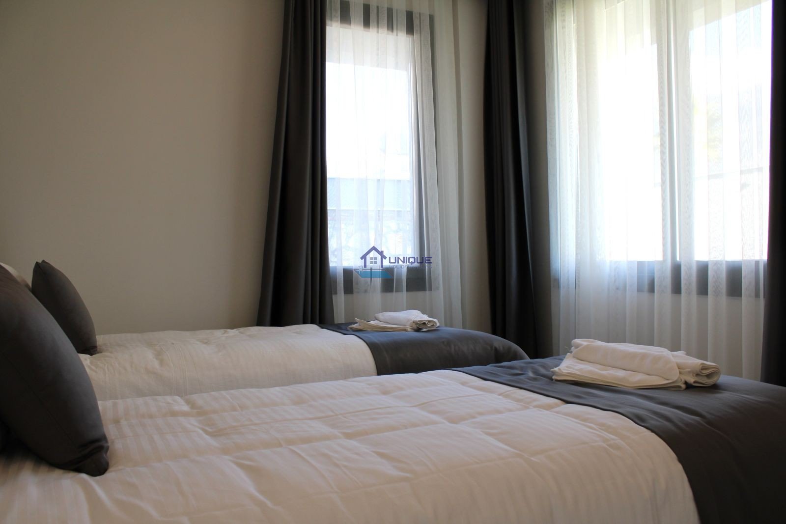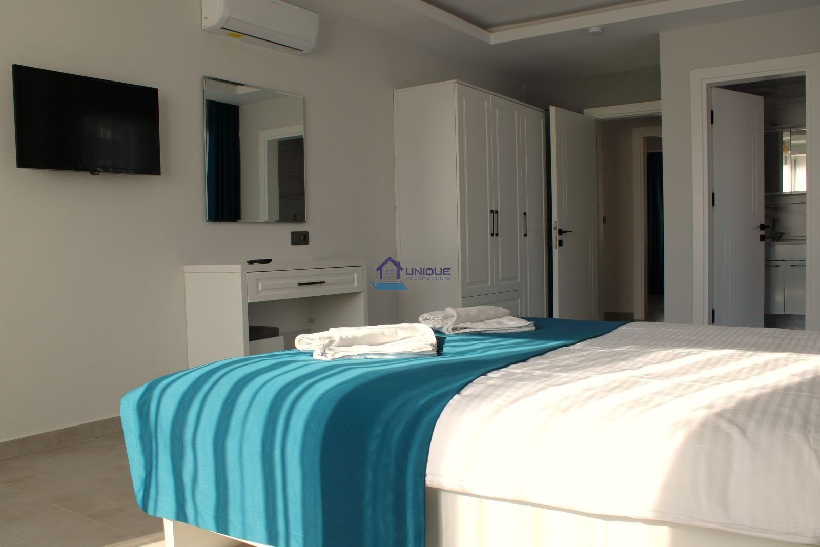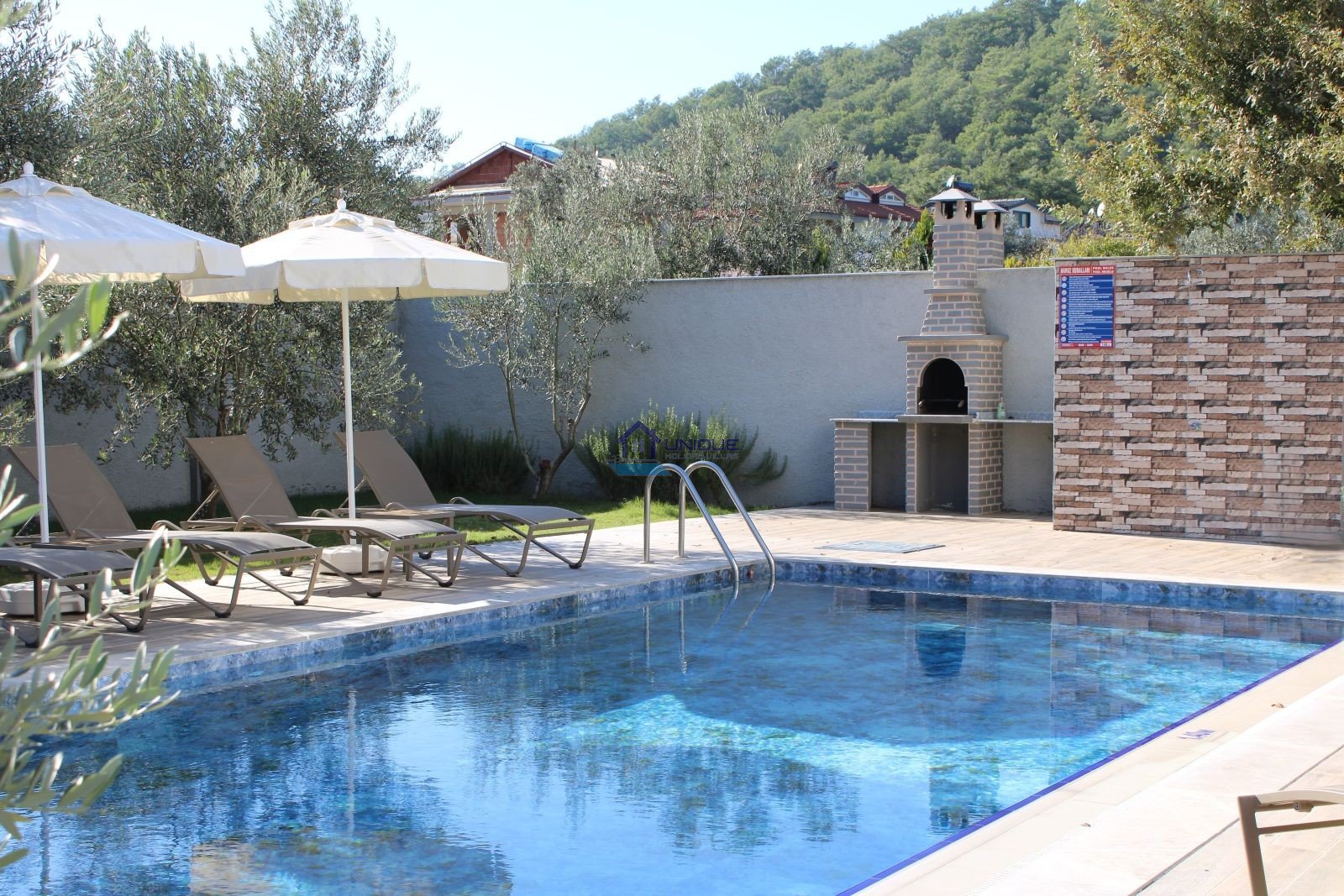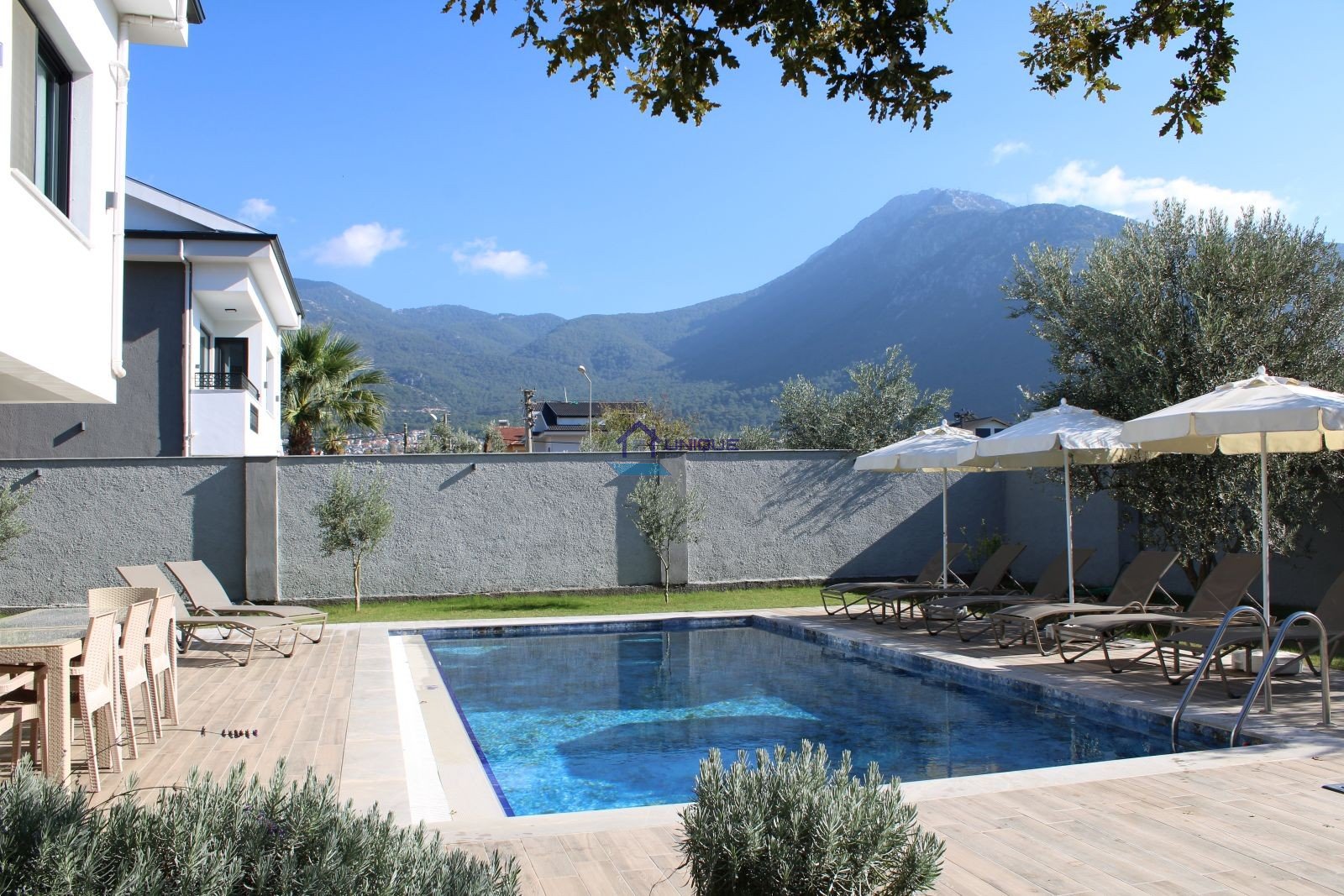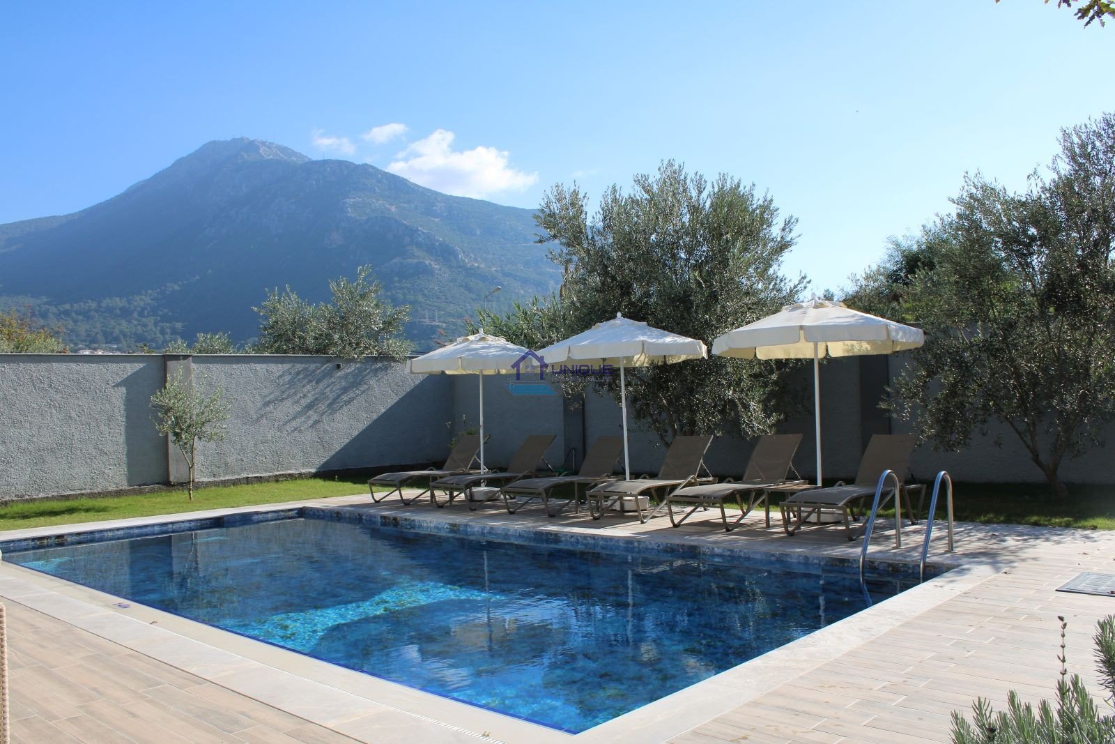 All rooms include TV, air conditioning, wardrobe, dressing table, and bedside tables. The middle and upper floors offer views of Babadag, Hisaronu, and pine forests, making it a perfect choice for nature-view villa seekers.