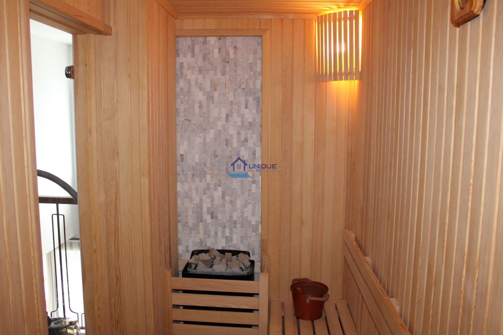 Middle Floor: 2 bedrooms with en-suite bathrooms, each with a double bed and private balcony. A sauna is also available for guests seeking extra relaxation.