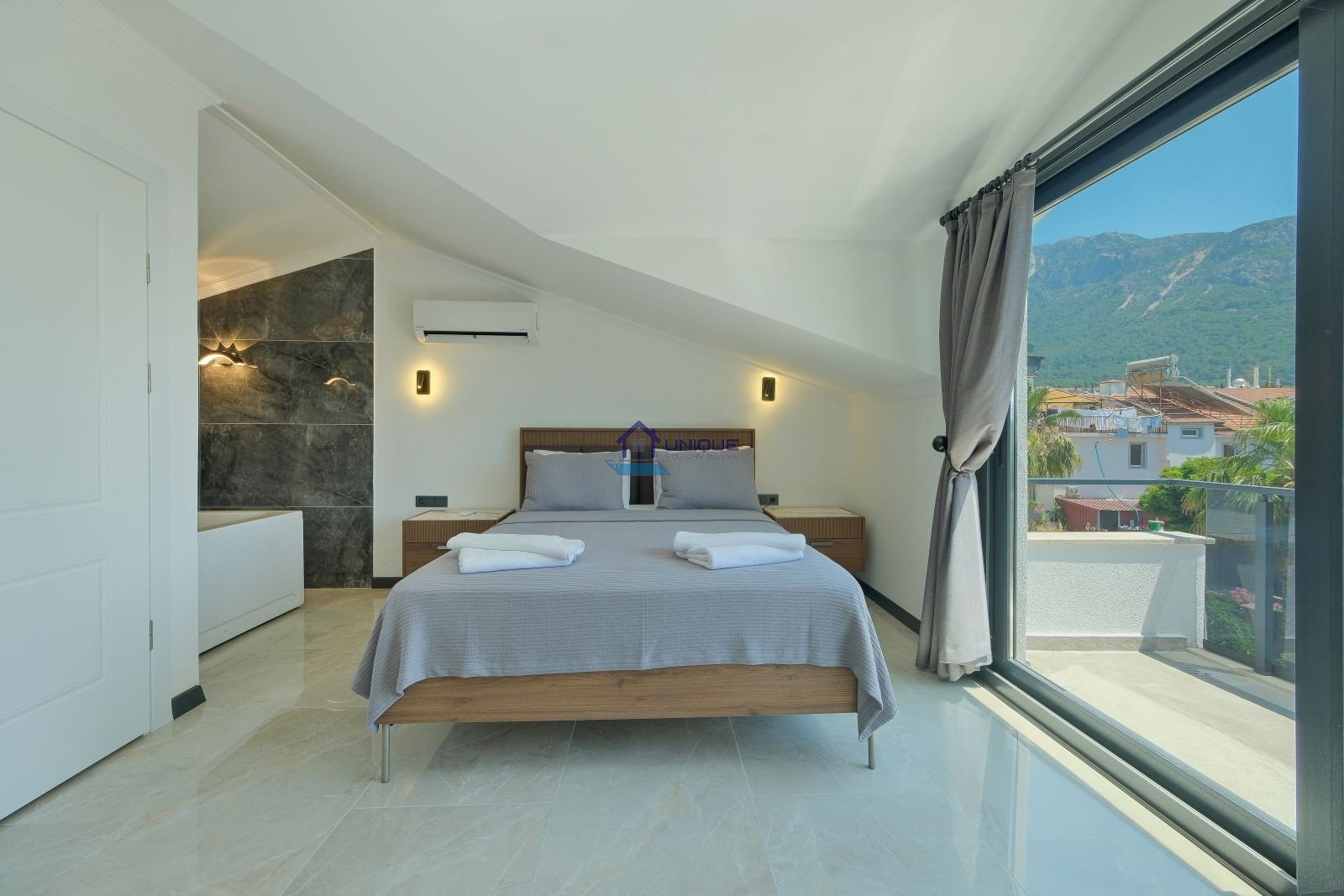 Top Floor: Master suite with a jacuzzi en-suite bathroom, Double bed, Large private sun terrace — an ideal spot for peaceful holiday lettings in Ovacik