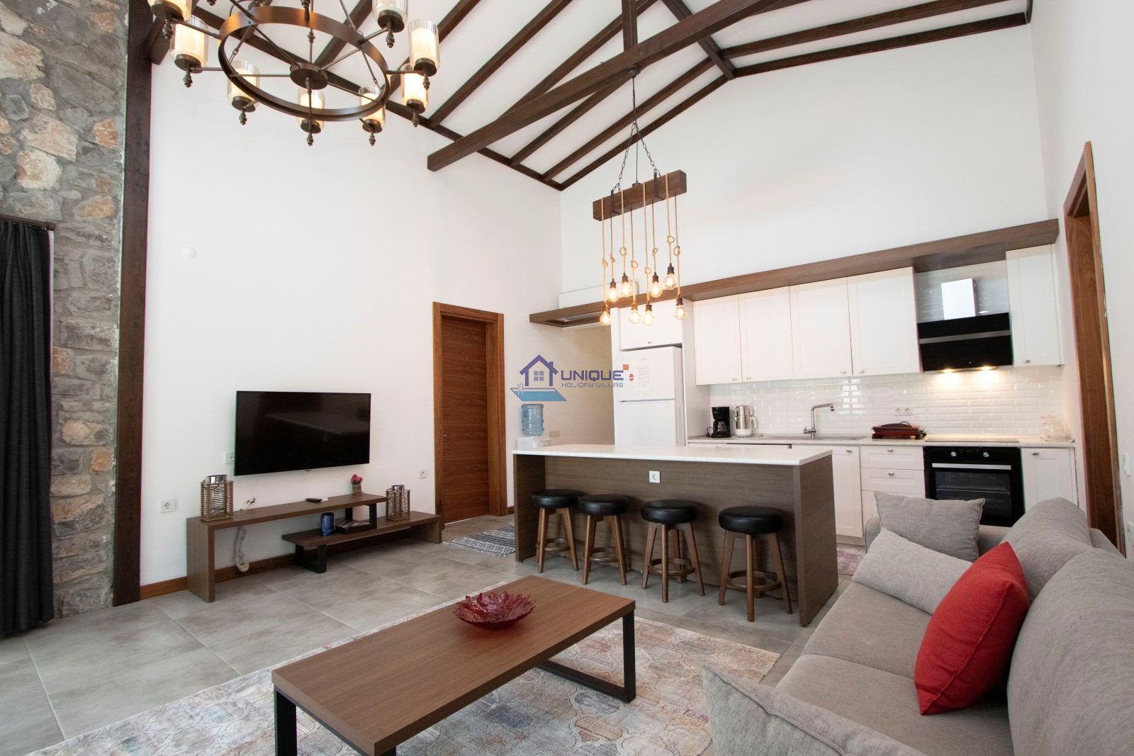 With its fully equipped open-plan kitchen and comfortable living area, Villa ABELA stands out among Fethiye villa rentals with private pool options.
