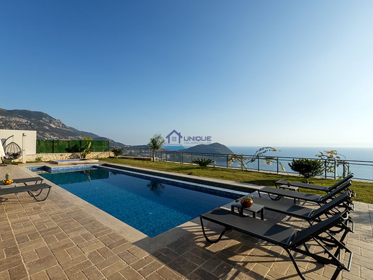 Located on a unique hilltop in the popular holiday destinations of Kaş and Kalkan, this exclusive villa offers a მშვიდ and privileged holiday experience accompanied by breathtaking panoramic sea and nature views.