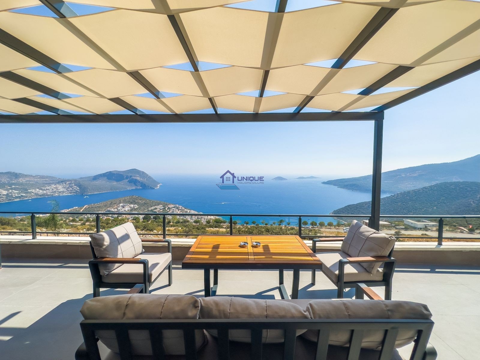Located on a unique hilltop in the popular holiday destinations of Kalkan, this exclusive villa offers a მშვიდ and privileged holiday experience accompanied by breathtaking panoramic sea and nature views.
