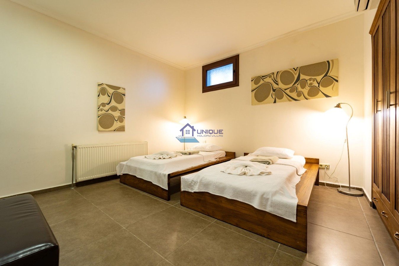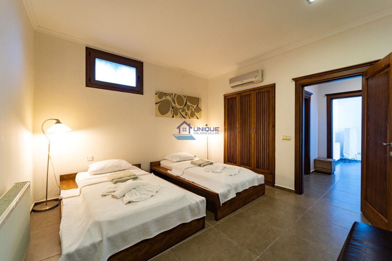Bedroom 1: Two single beds, air conditioning, en-suite bathroom