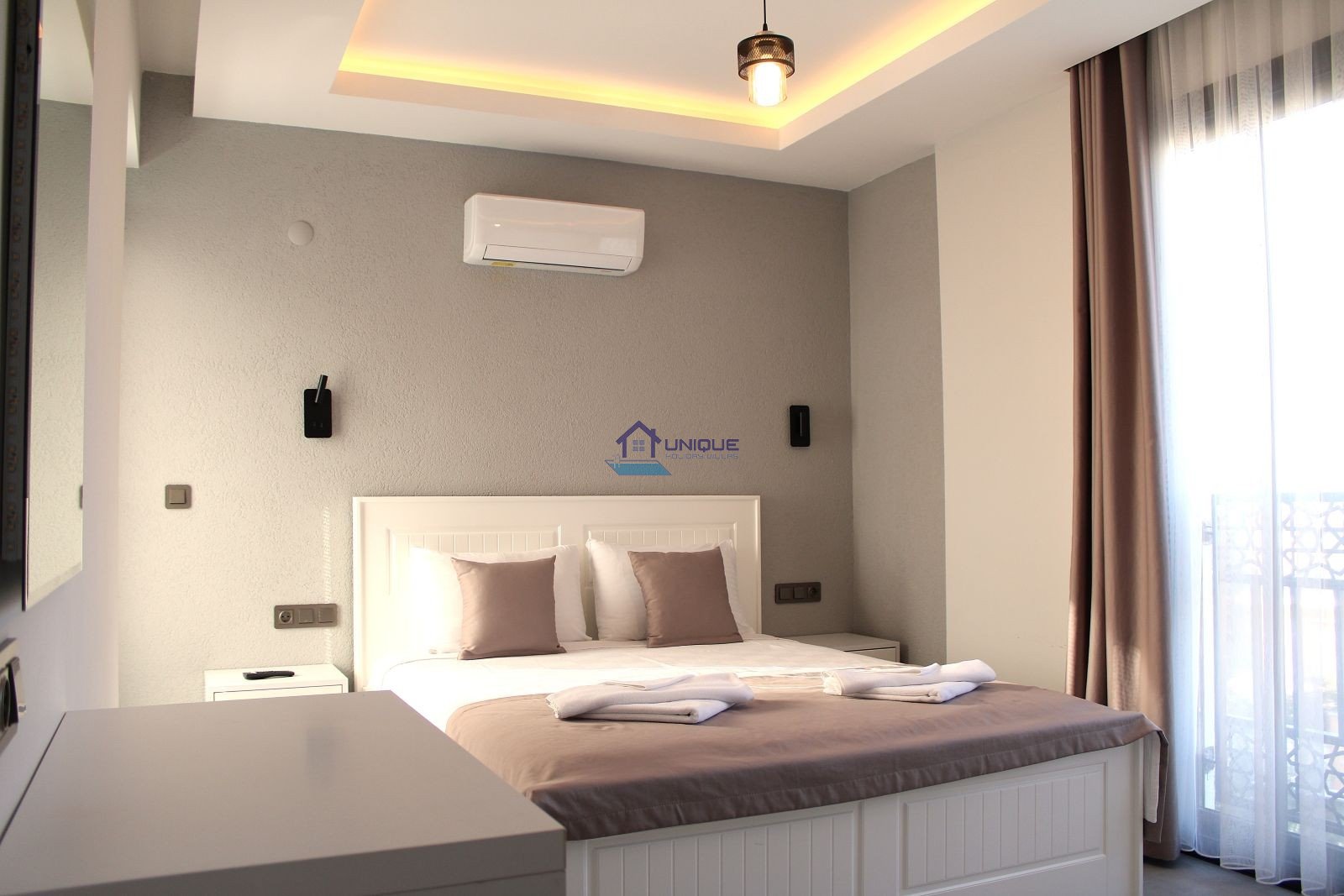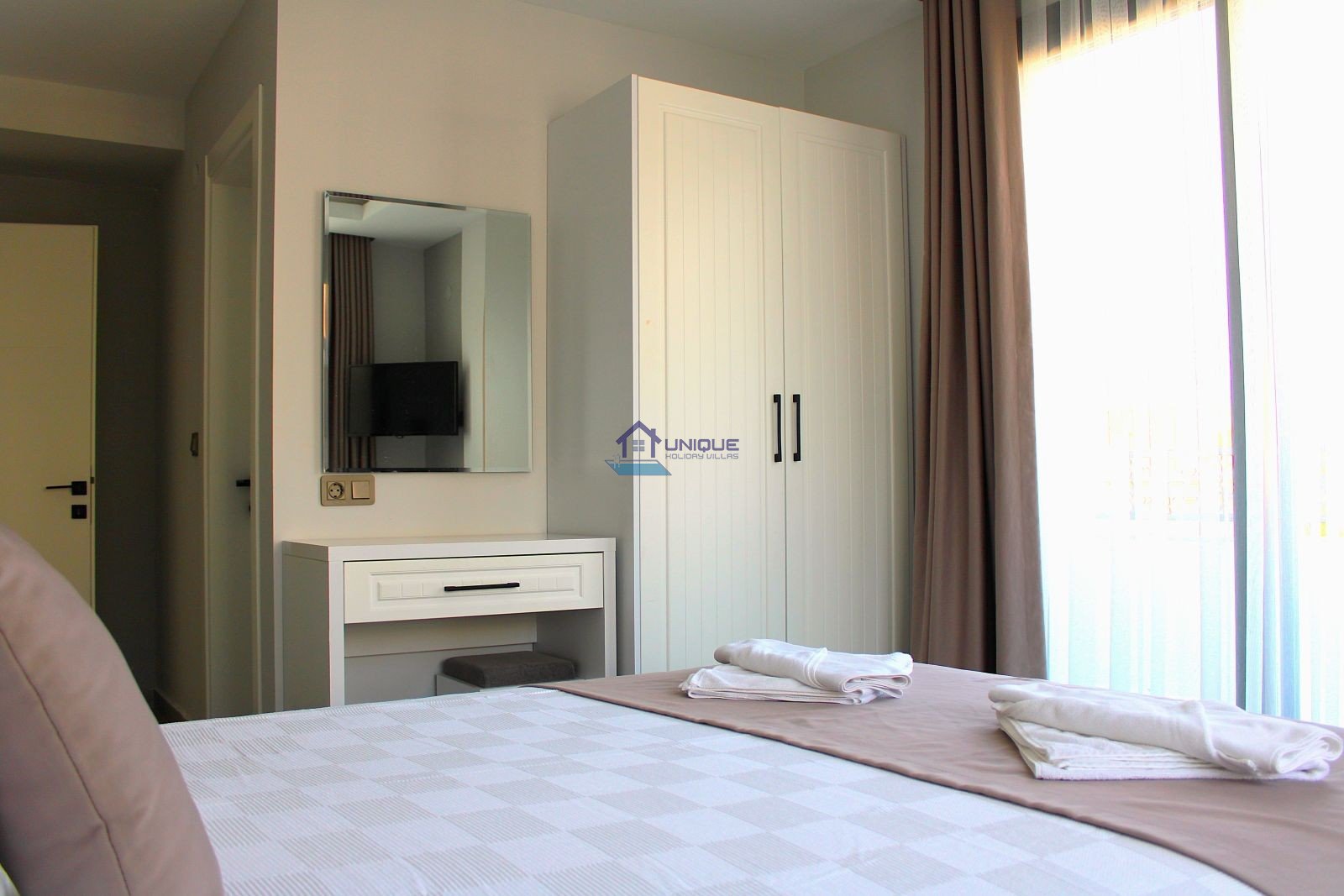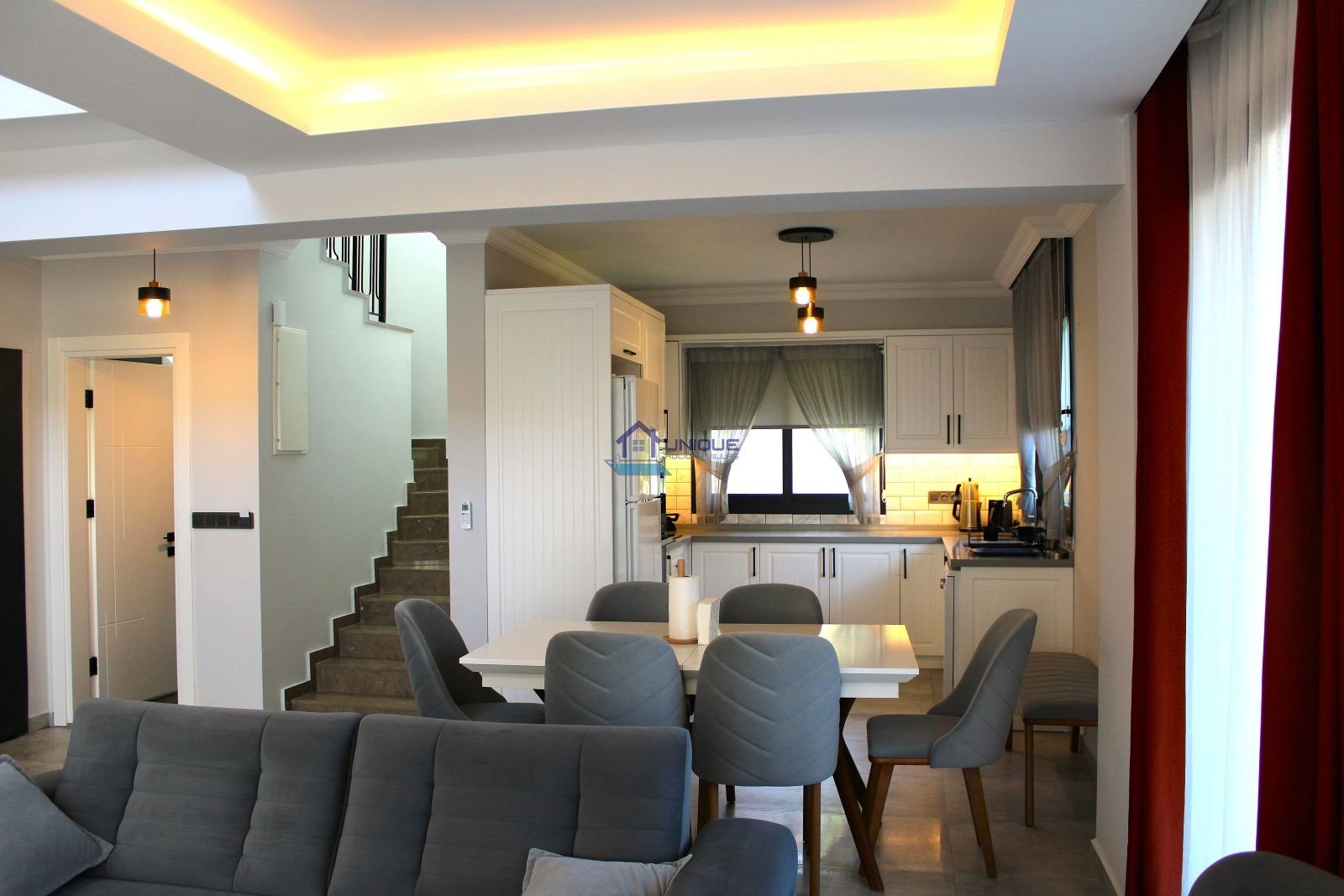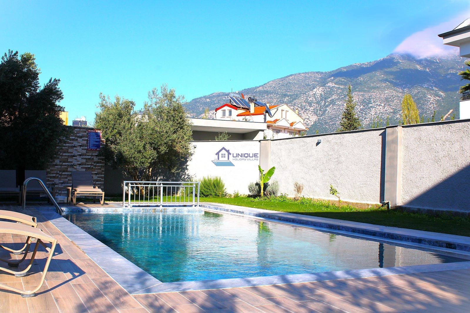 The villa’s convenient location makes it one of the most desirable options for a Fethiye villa rental. Enjoy breakfast by your private pool, spend lazy afternoons sunbathing, and take a short walk to Hisaronu Center in the evening for dining and entertainment. The world-famous Oludeniz Beach is just 2.5 km away, while Fethiye town center is a 15-minute drive. Public transportation stops are nearby, making it easy to explore the region without needing a car.