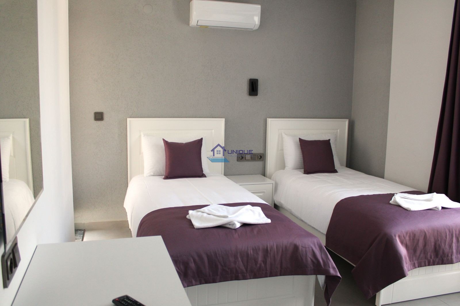 All rooms have air conditioning, TV, wardrobes, and dressing mirrors. From the upper floors, you can enjoy the views of Hisaronu, Babadağ, and the surrounding pine forests — ideal for those seeking an Oludeniz sauna villa or luxury Fethiye family villa.