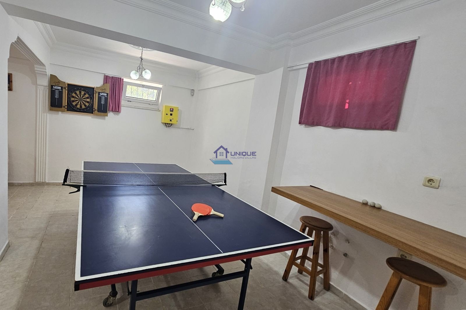 Basement Floor; 2 bedrooms (one double, one twin with en-suite bathroom), Activity/entertainment room with table tennis and TV, Shared bathroom