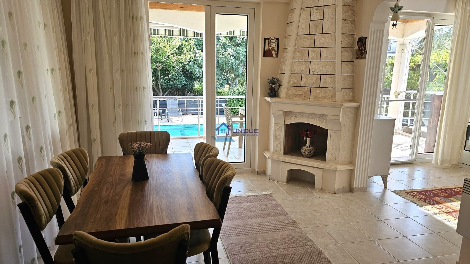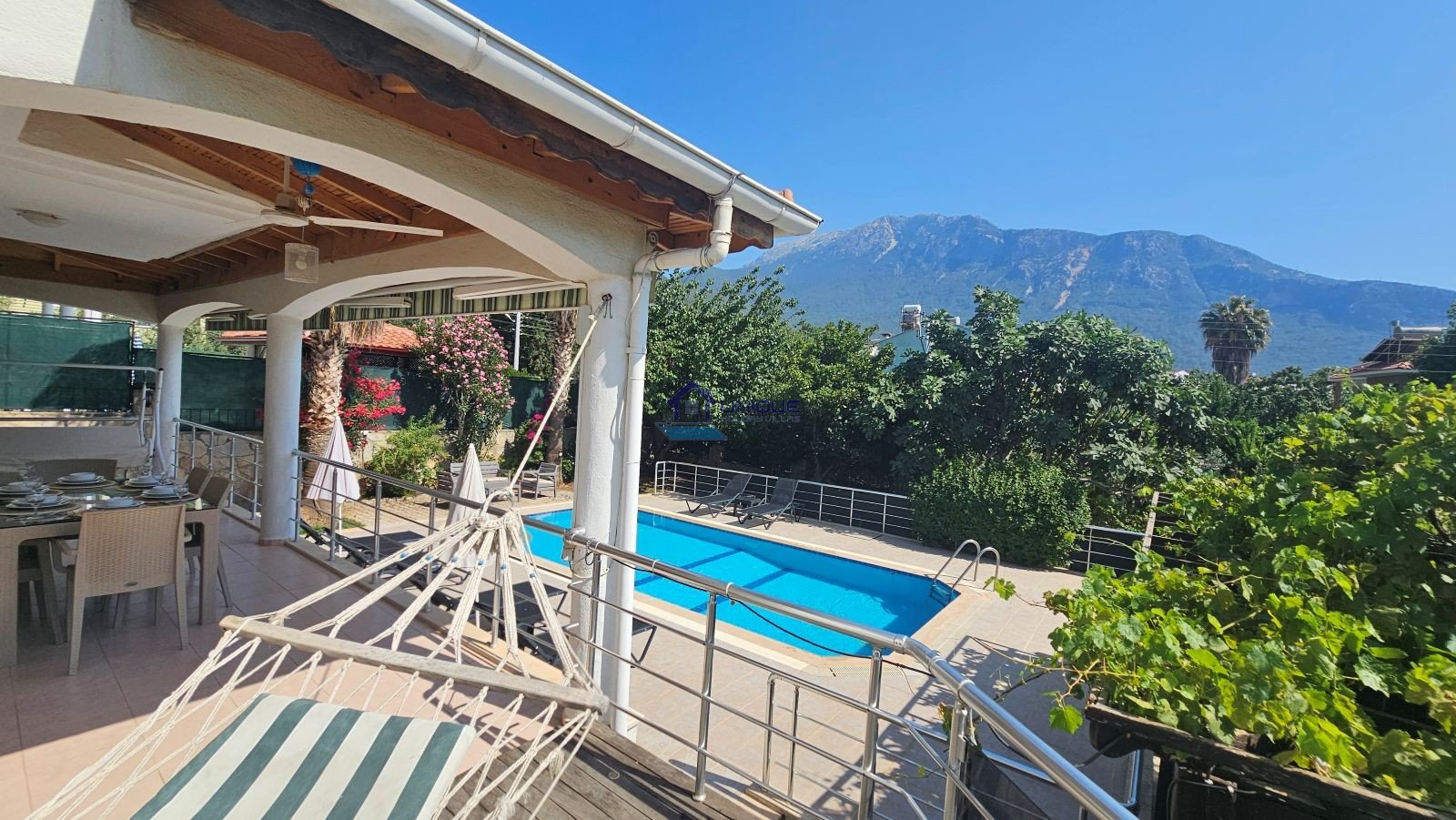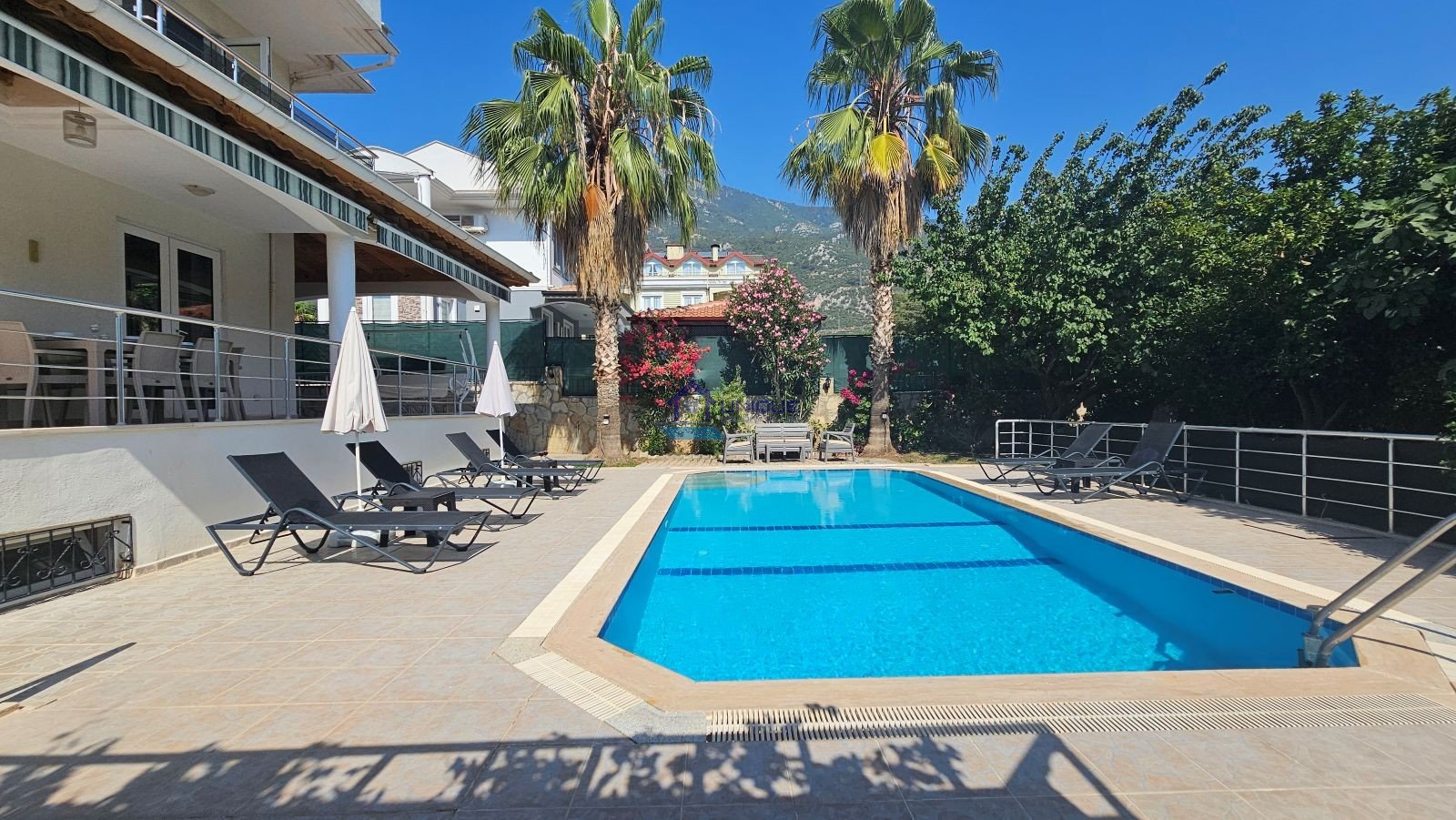 This elegant 5-bedroom villa accommodates up to 10 guests and stands out with its large living areas, activity room, outdoor pool, and mountain-view balconies. Whether you are searching for a private pool villa in Fethiye, a comfortable Ovacik villa rental, or a family-friendly holiday home near Oludeniz, Villa ERTK1 is an excellent choice.