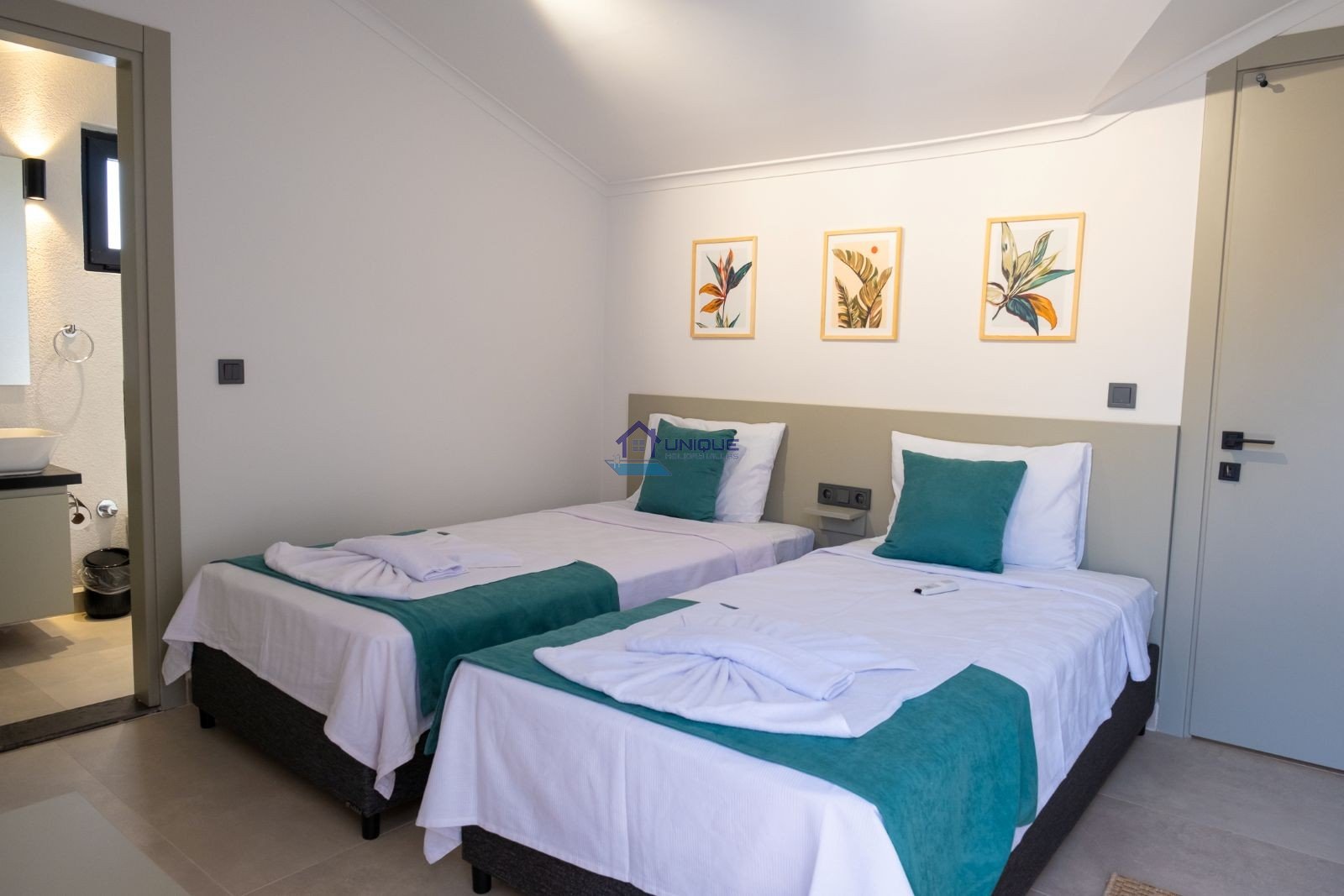 Top Floor: 2 en-suite bedrooms; one with a double bed, the other with two single beds, and a balcony with stunning views of Babadağ Mountain.All rooms are bright, airy, and designed to maximize natural light, making it ideal for those searching for 4-bedroom villas in Fethiye or Ovacik villa rentals.