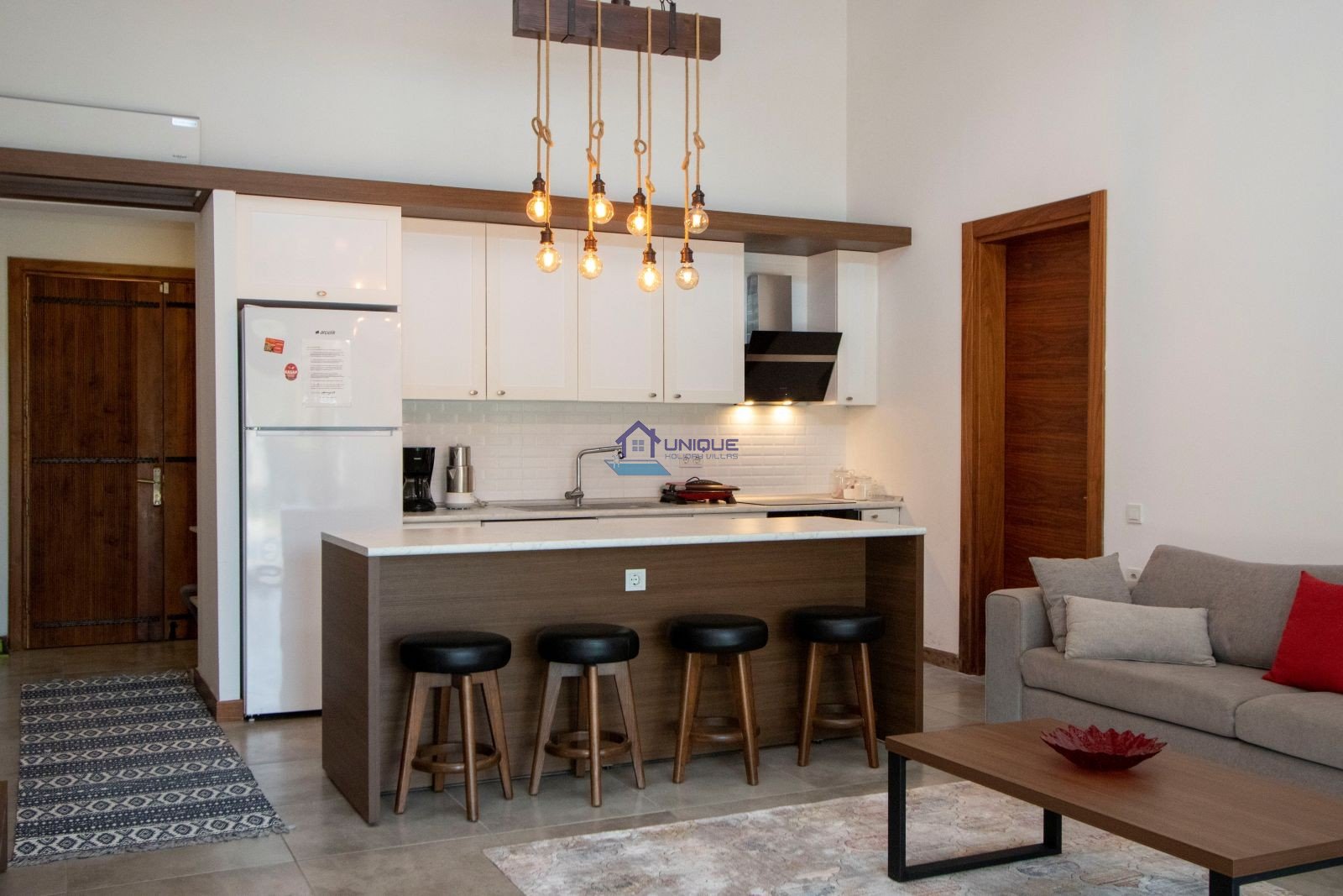 The open-plan kitchen and comfortable living area provide everything needed for a relaxing villa holiday in Fethiye.