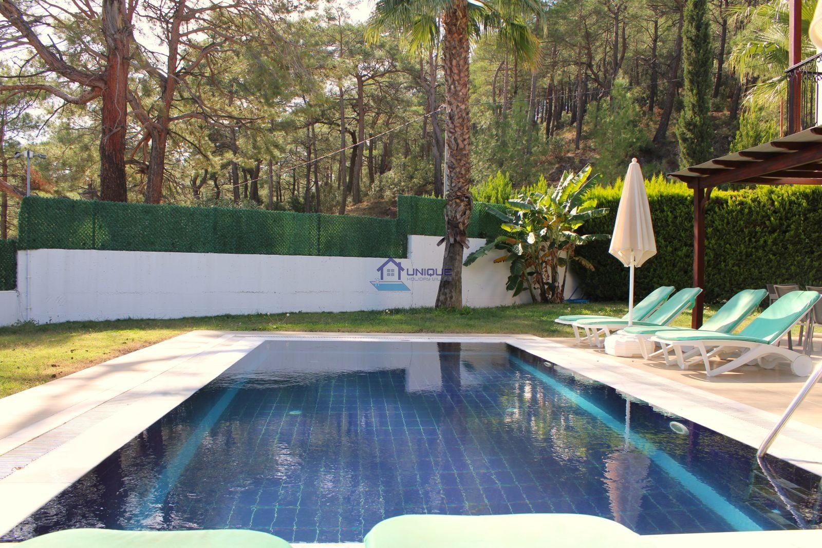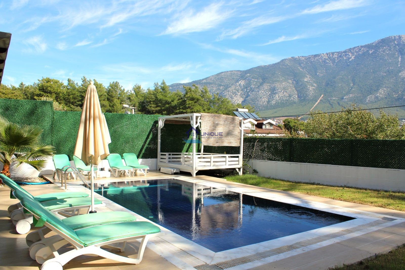 The villa features 4 bedrooms and accommodates up to 8 guests, making it ideal for families and groups of friends. One side of the villa is surrounded by pine forests, while the other offers stunning views of Babadağ, Ovacik, and Hisaronu, creating a perfect blend of nature and comfort.
