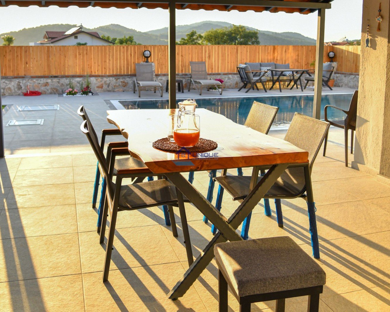 Villa KAYA1 is one of the most preferred rental villa options in the Fethiye and Oludeniz region, located just 100 meters from the center of Hisaronu. Within a 1–2 minute walking distance, you can reach restaurants, shops, bars, and entertainment venues. This Hisaronu rental villa stands out for its central location and peaceful atmosphere, offering families and groups of friends a private space and comfortable stay for an unforgettable holiday.