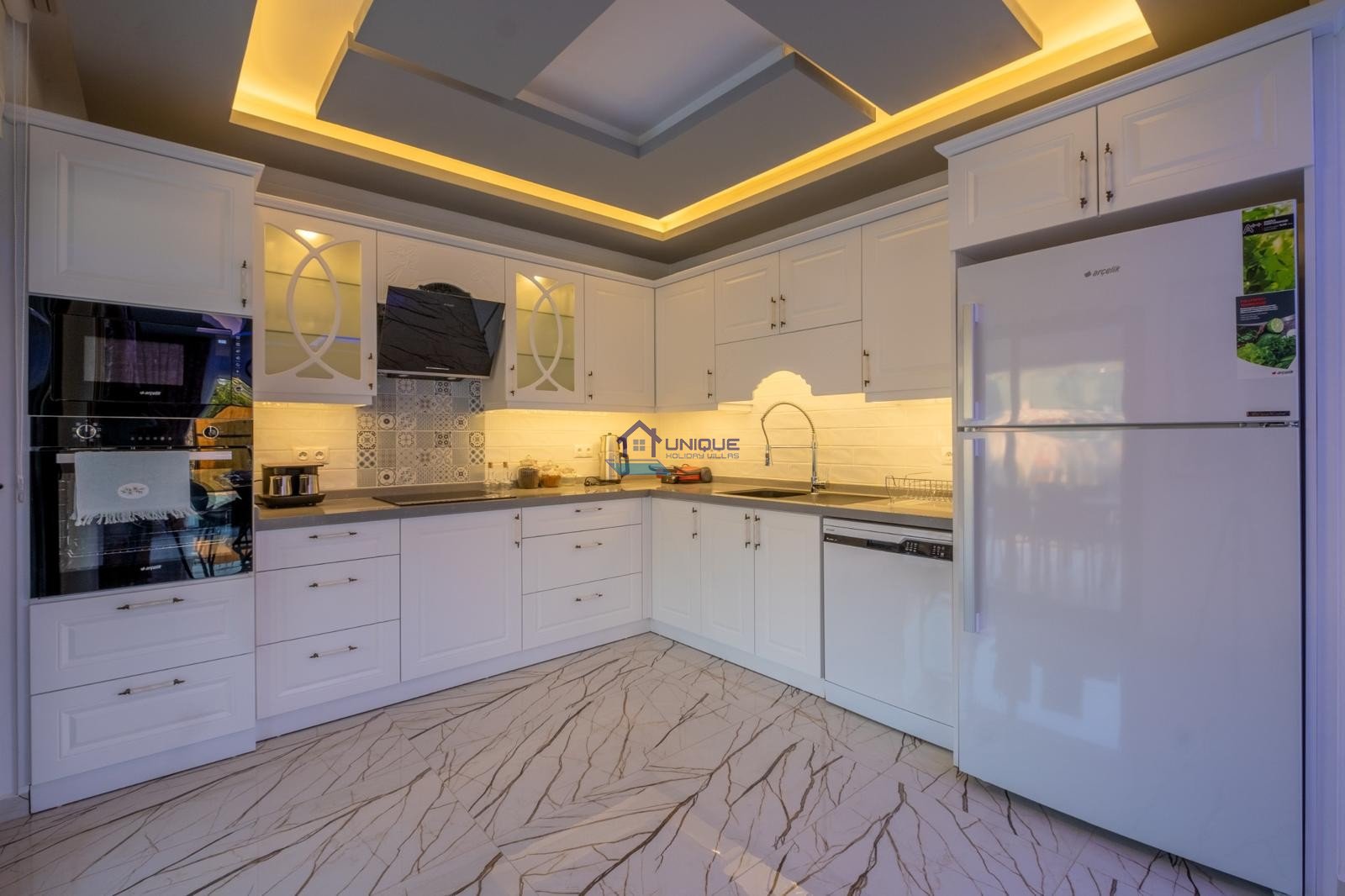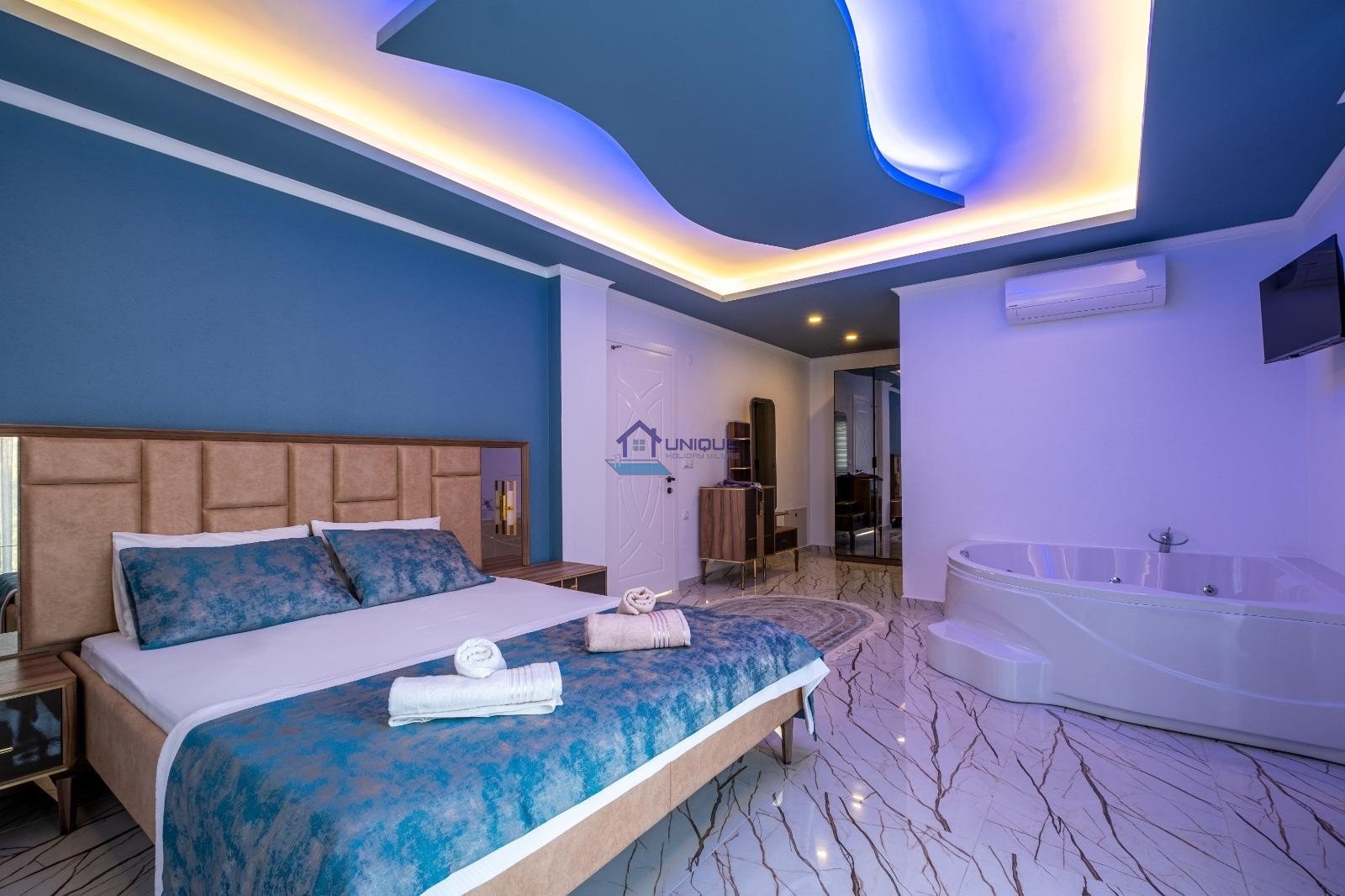Внутреннее пространство Villa ALMN1 оформлено в современном стиле и продумано до мелочей. Светлые, просторные помещения создают атмосферу расслабления и уюта — идеальное место для семейного отдыха.