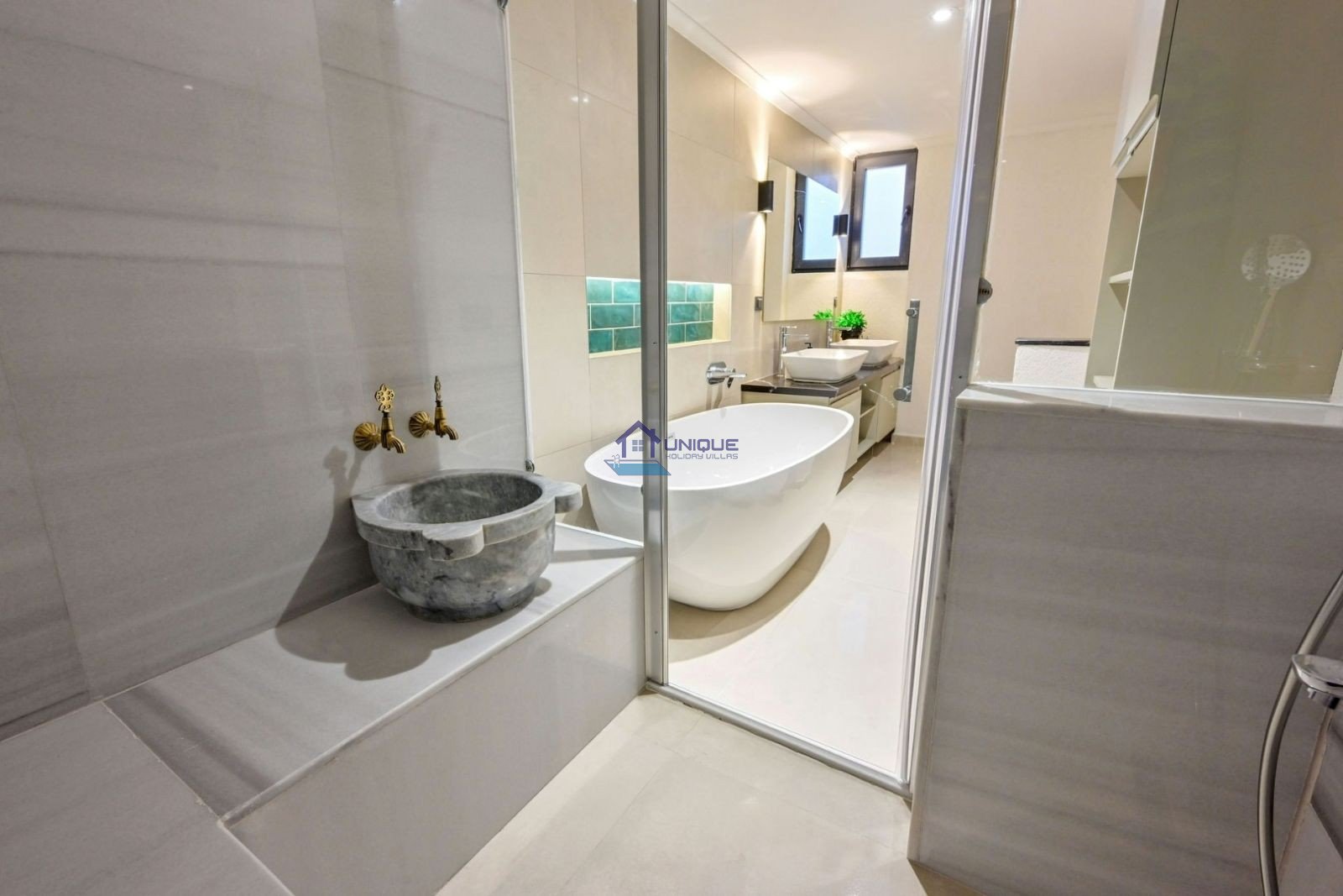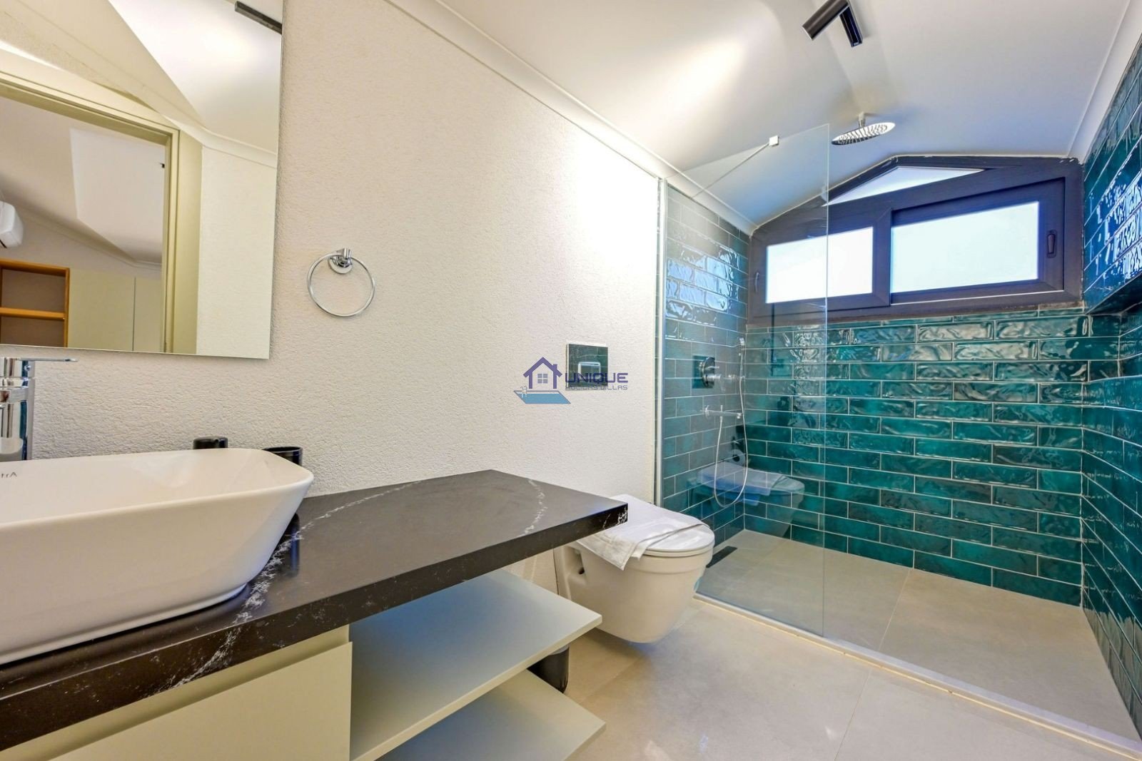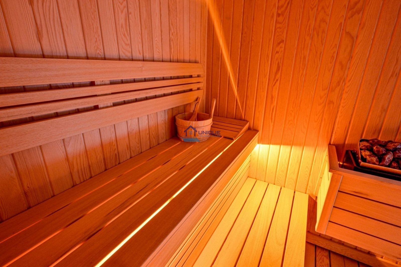 Одна из ванных комнат выполнена в стиле турецкого хаммама, а также на этом этаже находится сауна — редкая особенность среди вилл Олюдениза, предлагающих такие эксклюзивные возможности для релакса.