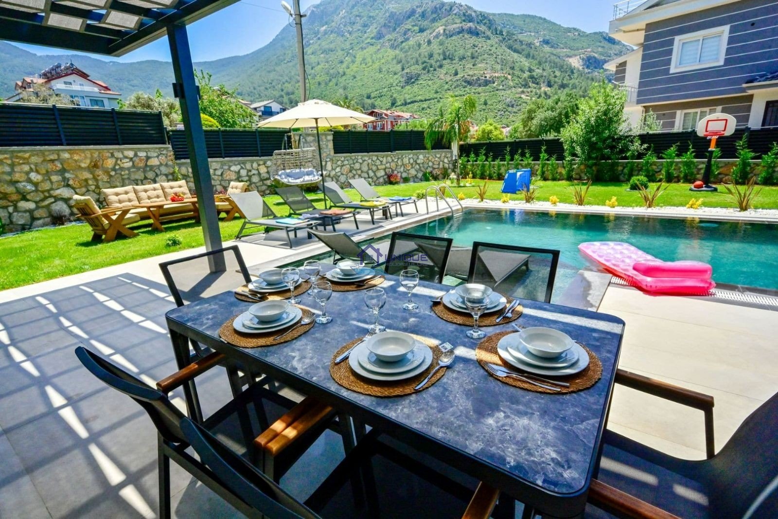 Эта зона идеально подходит для принятия солнечных ванн, плавания, отдыха или спокойных вечеров с семьёй и друзьями. Отличный вариант для гостей, которые ищут виллу в Фетхие с просторным садом.